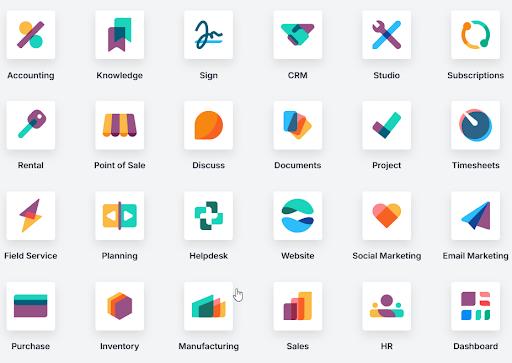 This screenshot provides a sample of business processes covered by the in-house Odoo apps.
